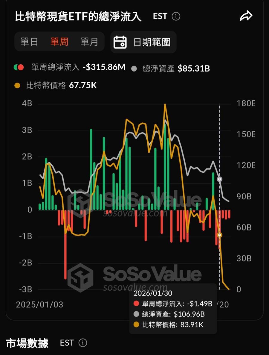 二、機構面:現貨 ETF 五週連續淨流出