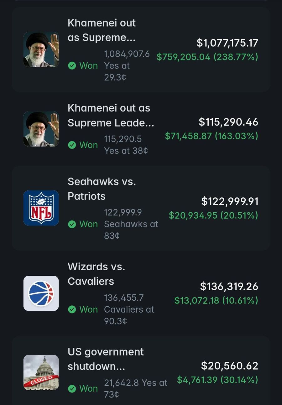 近期圍繞伊朗局勢的合約交易,被多家媒體與觀察者、鏈上分析師指出存在「可疑時點的大額下注」與「疑似內線獲利」爭議,甚至根據鏈上數據查看,許多鏈上交易者獲利超過 50~100 萬美金不等,正反映這一類市場在地緣政治標的上特別脆弱。
