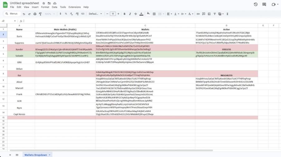 該群組建立一份 Google Sheet,彙整多個 KOL 目標的錢包,並將 Broox 透過 Axiom 內部儀表板取得的地址資料映射與整理。ZachXBT 表示:表單或外洩截圖中被點名的多位 KOL 已被聯繫,並且各自獨立確認該表上歸屬於他們的錢包資料準確。