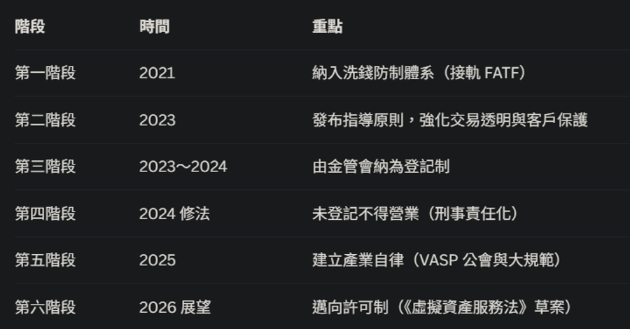 近年最重要的法制變革,在於虛擬資產服務提供者(VASP)正式納入監理。