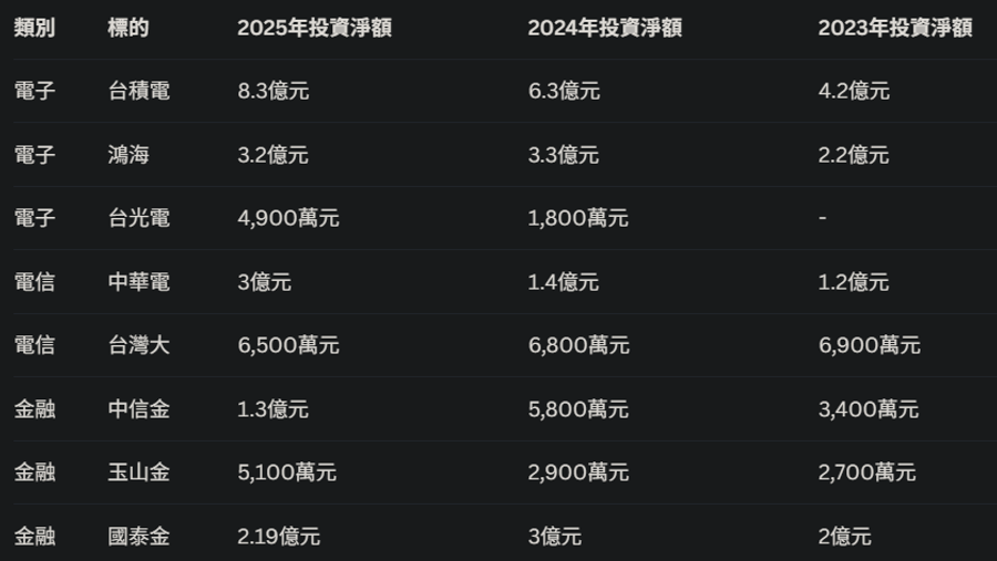 備註:台積電部分涵蓋受捐贈的 1 萬股