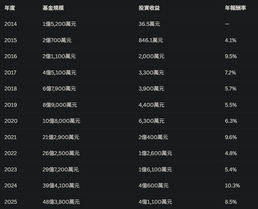 在全球金融市場高度波動的環境下,國立清華大學校務基金交出一份罕見的長期成績單。自 2014 年投入市場運作以來,資產規模已由最初約新台幣 5,000 萬元,成長至約 48 億元,累計為學校創造逾 15 億元收益,且連續 11 年未出現年度虧損。本文深度拆解清大永續基金的投資邏輯、風控架構,以及對一般投資人與量化交易者的策略意義。